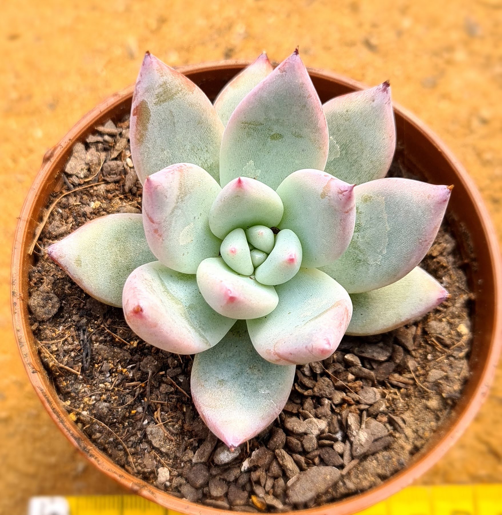 Esta echeveria é uma variedade da colorata com roseta menor e com cores mais claras. Possui folhas azul claras com pontas vermelhas e com o tom pruinoso da colorata brandtii. Suas folhas são mais gordinhas que a da variedade brandtii. Planta de fácil cultivo, prefere substrato poroso, bem adubado, regas moderadas e boa incidência solar.