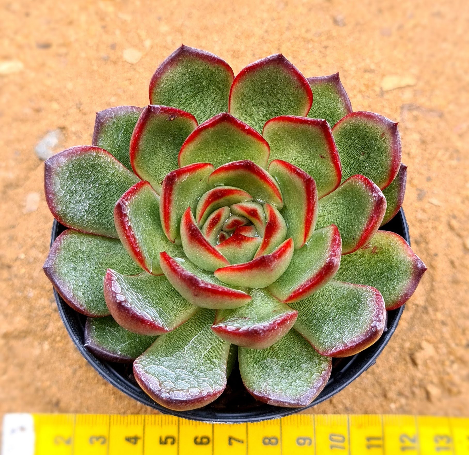 Planta de fácil cultivo, forma roseta média, com folhas verdes brilhantes cujas bordas e ápice são avermelhadas. Prefere substrato poroso, bem adubado, regas moderadas e boa incidência solar.
