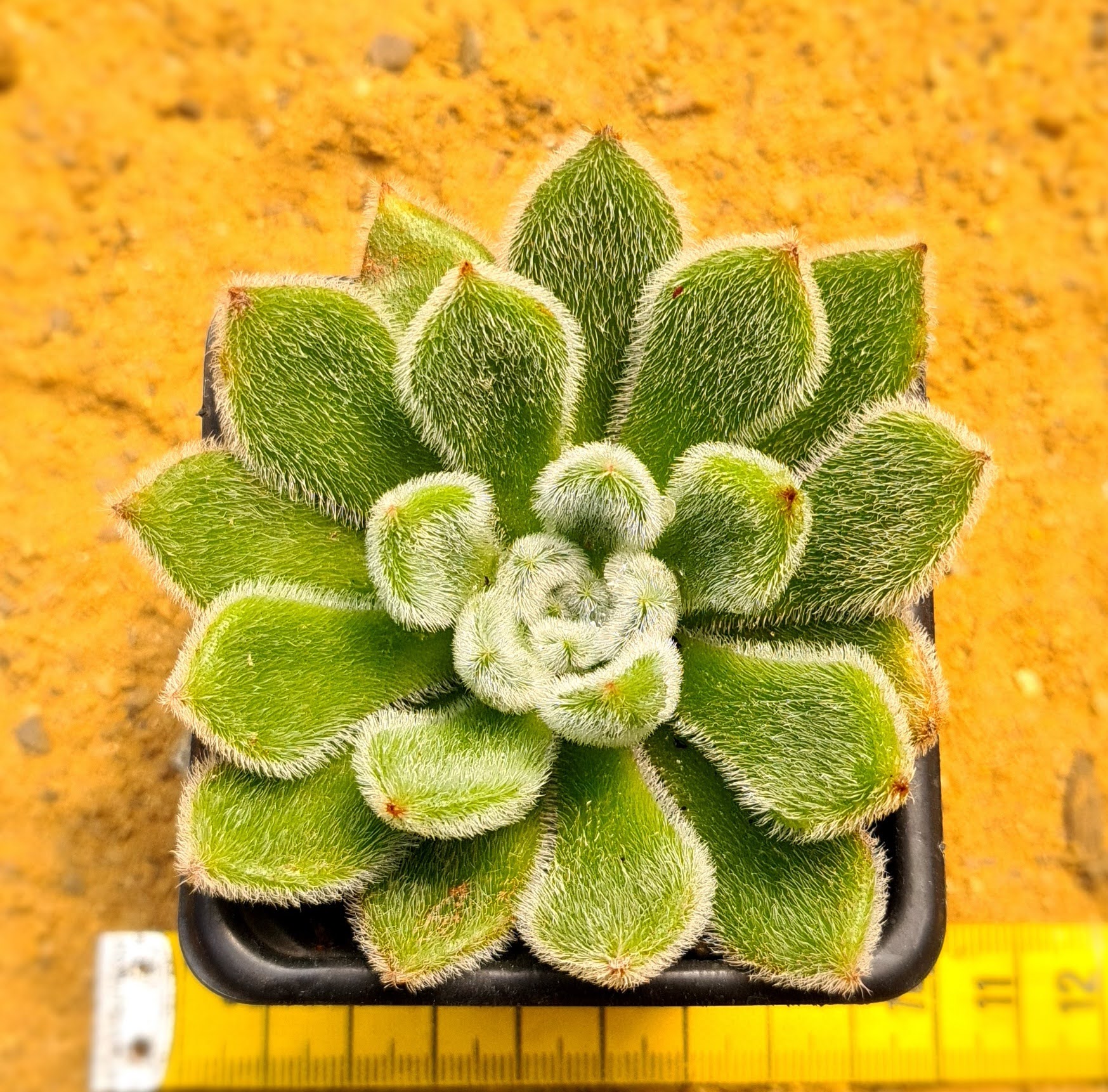 Planta de fácil cultivo, forma pequenas rosetas densas, fomando colônias devido aos perfilhos laterais, possui folhas pequenas verde acinzentada cobertas de pequenos pelos. Prefere substrato poroso, bem adubado, regas moderadas e boa incidência solar.